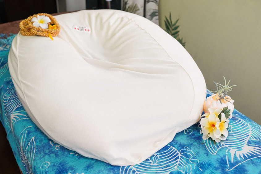 ・お腹が大きくなってきた方には座位と仰向け、横向き姿勢での施術が基本ですが、妊婦さん専用のうつ伏せクッションを用意しており背中の施術も可能です。このクッションを使うと、多くの方が臨月でもうつ伏せになれます。