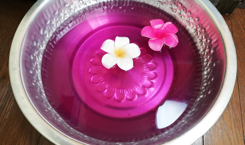 足湯をしてからベッドに移動します。